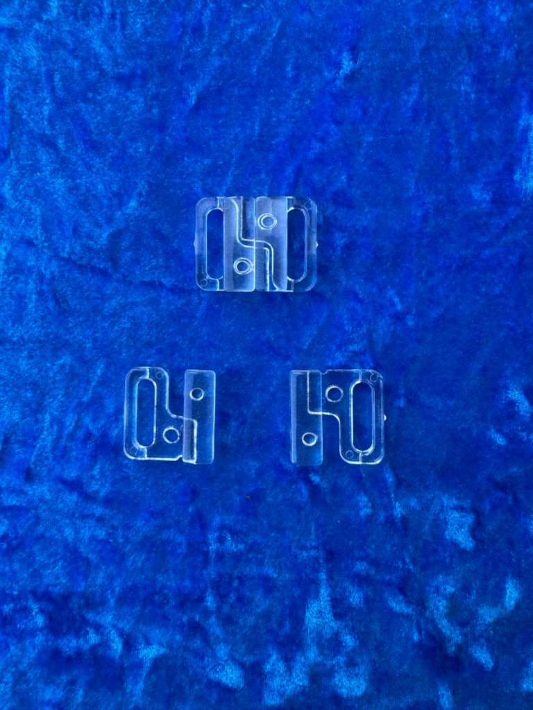Both sides have an 24mm INSIDE hole measurement. Overall the clip is 32mm x 34mm wide.