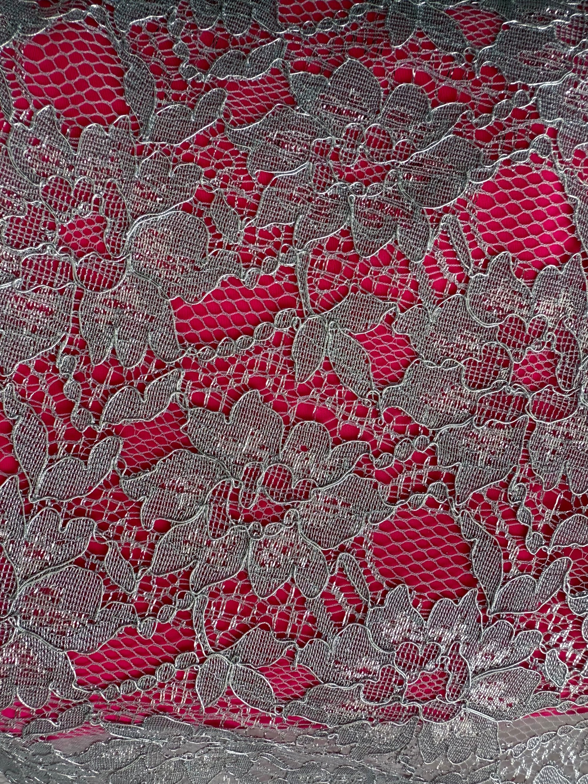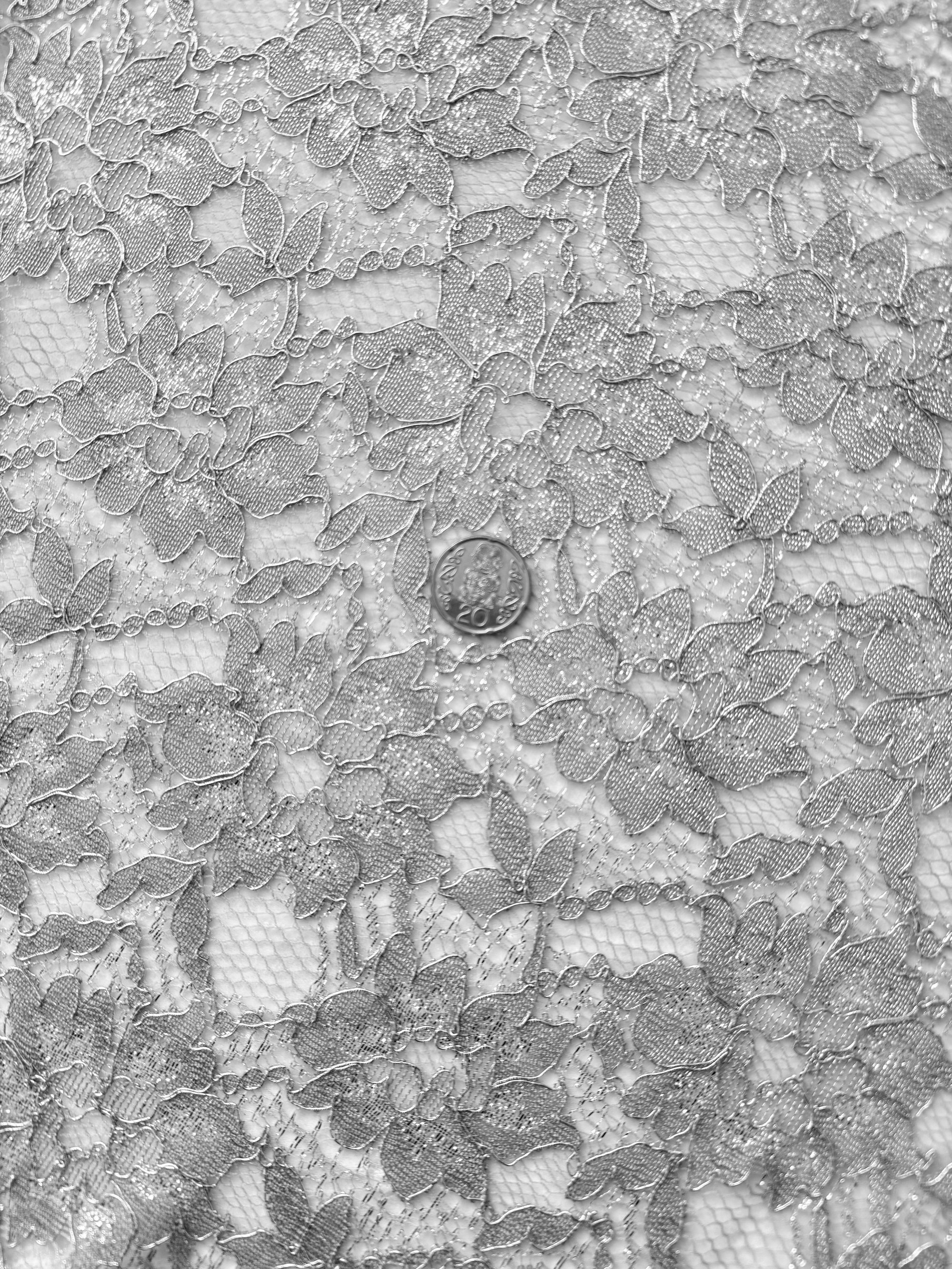 Medium silver grey colour with a silver lurex thread / cord on the flowers